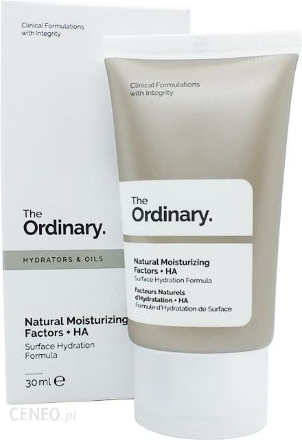 THE ORDINARY NATURAL MOISTURISING FACTORS+HA Krem nawilżający z kwasem hialuronowym 30mlNaturalne czynniki nawilżające (Natural Moisturizing Factors) to elementy, które chronią i nawilżają zewnętrzną warstwę skóry. Krem składa się z wielu aminokwasów, kwasów tłuszczowych, triglicerydów, mocznika, ceramidów, fosfolipidów, gliceryny, sacharydów, sodowego PCA, kwasu hialuronowego i wielu innych związków, które są naturalnie obecne w skórze.Produkt nie zostawia tłustej warstwy. Zapewnia natychmiastowe nawilżenie i trwałe rezultaty przy regularnym używaniu.PH wahające się między 6,5 a 7Nie zawiera alkoholu, silikonów, olejów, orzechów.WegańskiPodczas jego produkcji nie ucierpiały żadne zwierzęta.Sposób użycia: Po rytuale pielęgnacyjnym, nałóż na twarz i zostaw na noc.Pojemność: 30ml